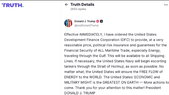As the war in the Middle East escalates, US President Donald Trump has ordered the US International Development Finance Corporation (DFC) to provide sweeping political risk insurance and unspecified guarantees for maritime trade.